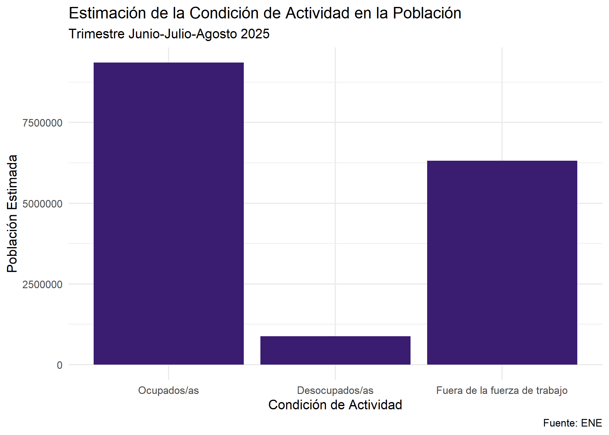Hoy trabajaremos con los datos del trimestre móvil Junio-Julio-Agosto de 2025, y nos enfocaremos en la variable activ, que mide la condición de actividad de las personas.