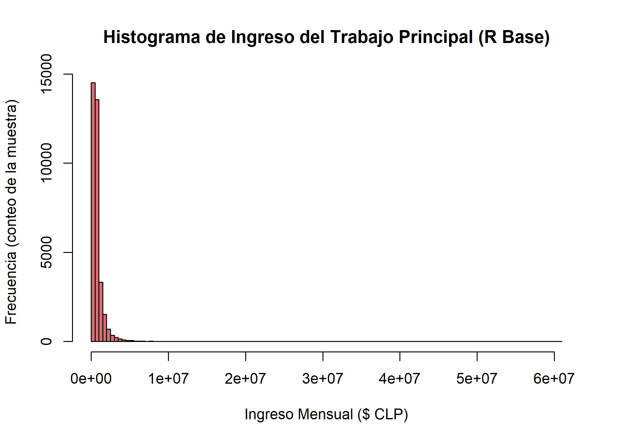 main = "Histograma de Ingreso del Trabajo Principal (R Base)",