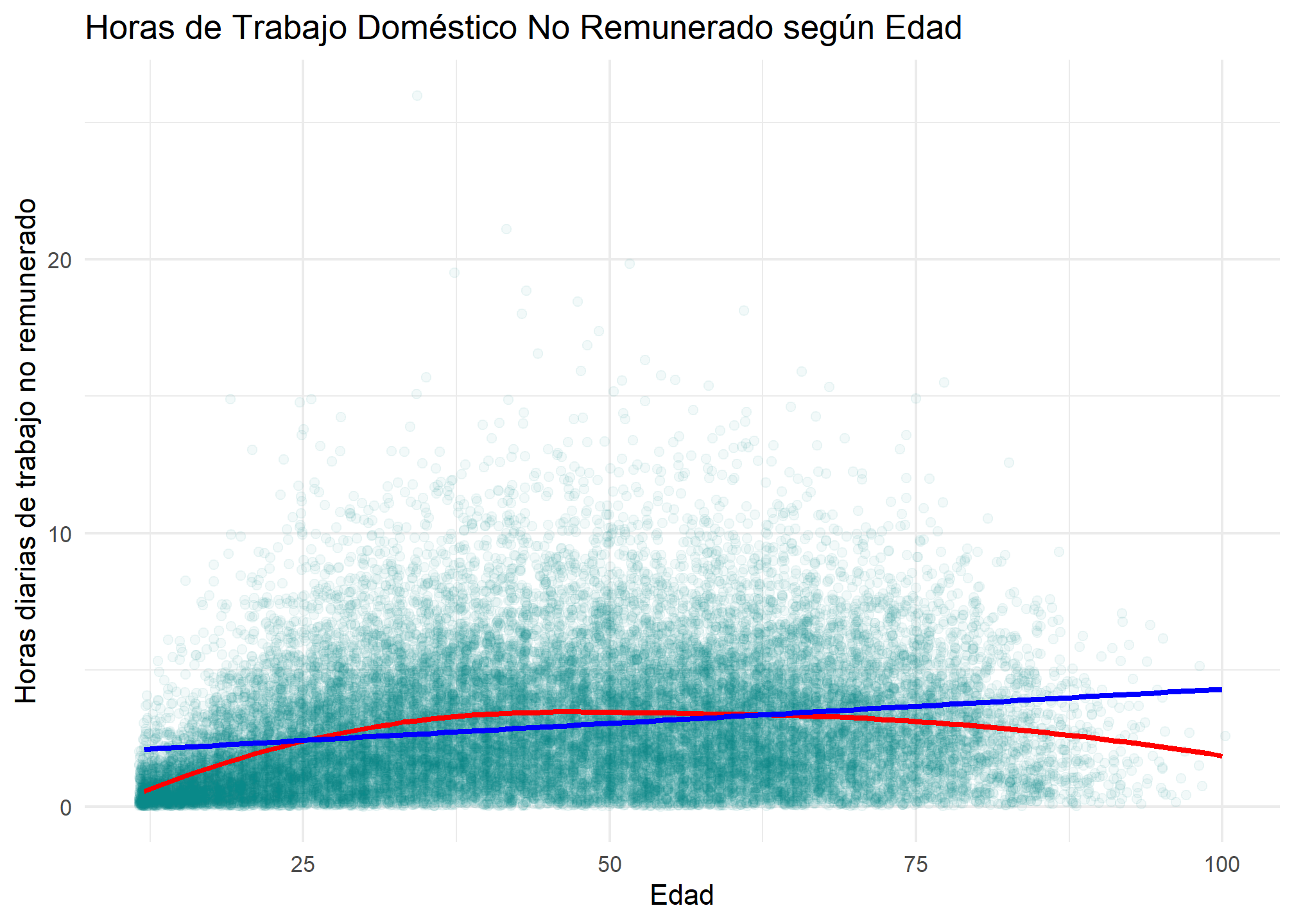x = "Edad", y = "Horas diarias de trabajo no remunerado"
